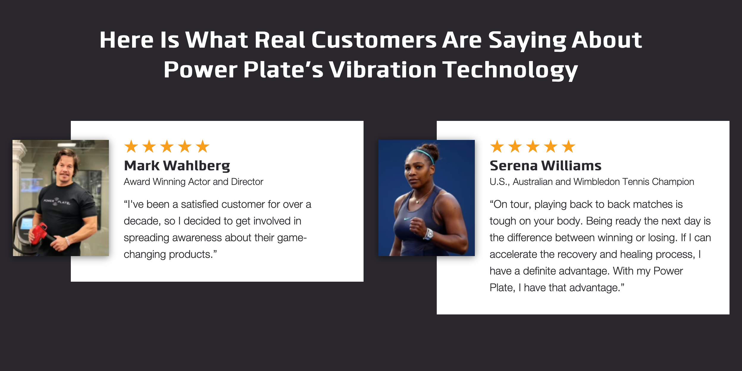 One of the most common questions that we get is “Does it really work?” The answer is yes, Power Plate is used by world class athletes like Serena Williams, F1 race car drivers, PGA golfers, NFL players and everyday people.