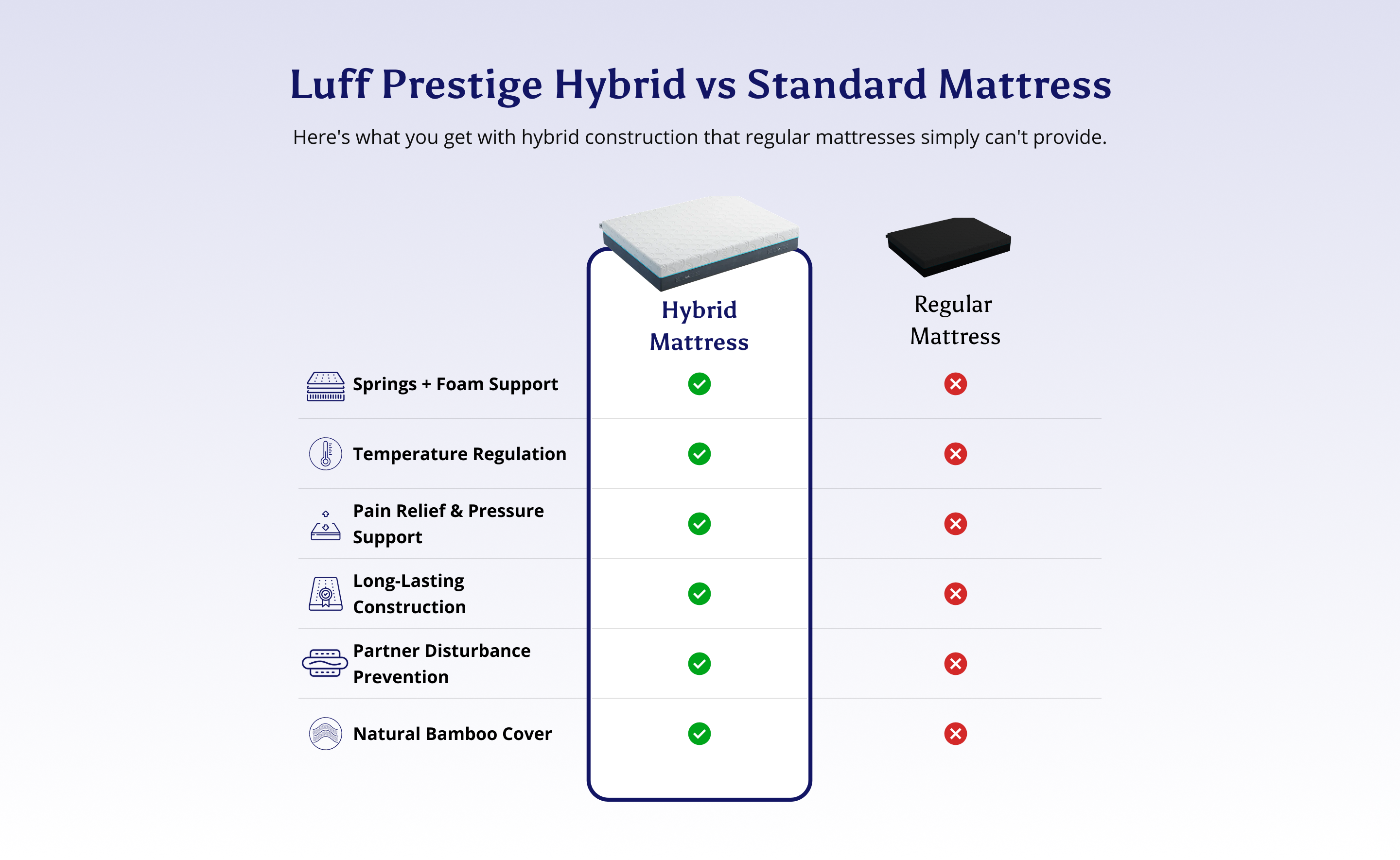 Luff's hybrid construction helps you get into deeper, more restorative sleep so you wake up ready for the day.