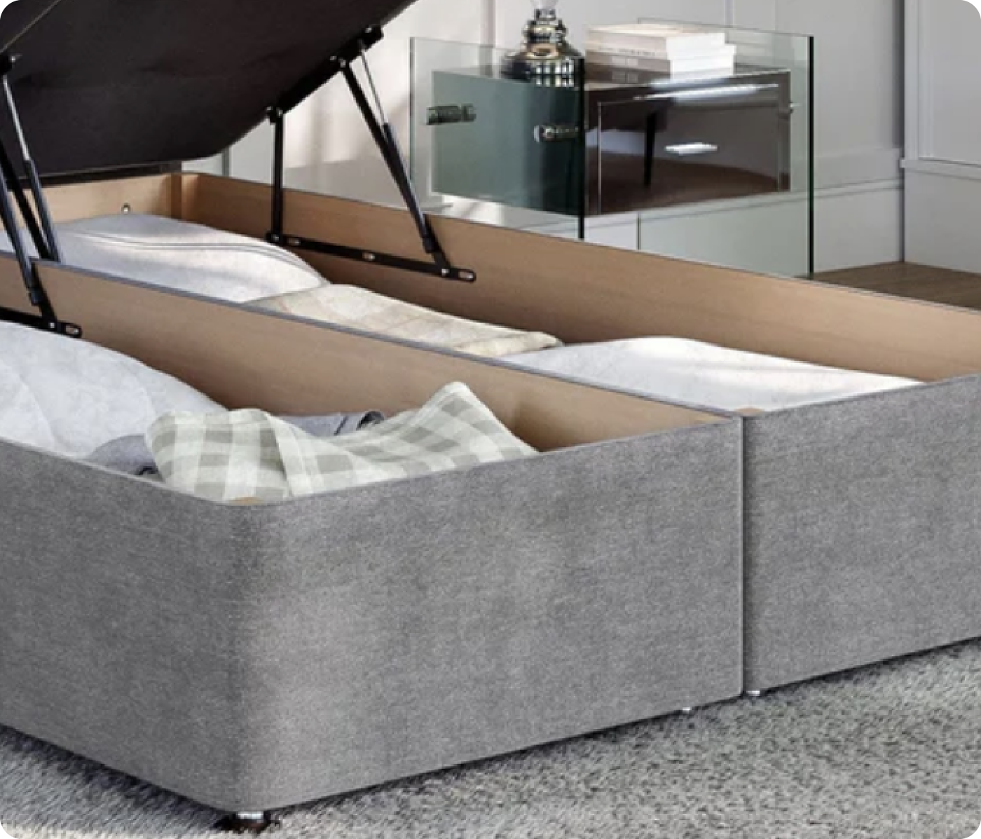 Say goodbye to clutter. The ottoman lift base gives you up to 4x more storage - perfect for bedding, seasonal clothes or life’s extras.